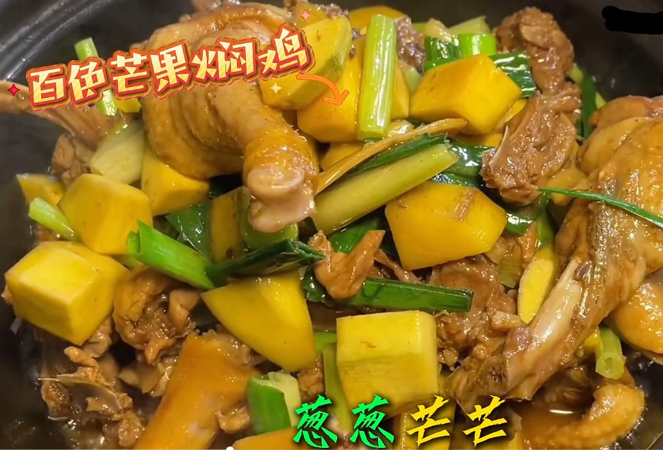 百色芒果焖鸡是一道极具当地构思和季节性的生果菜肴,完美诠释了广西“生果入菜”的饮食才智。