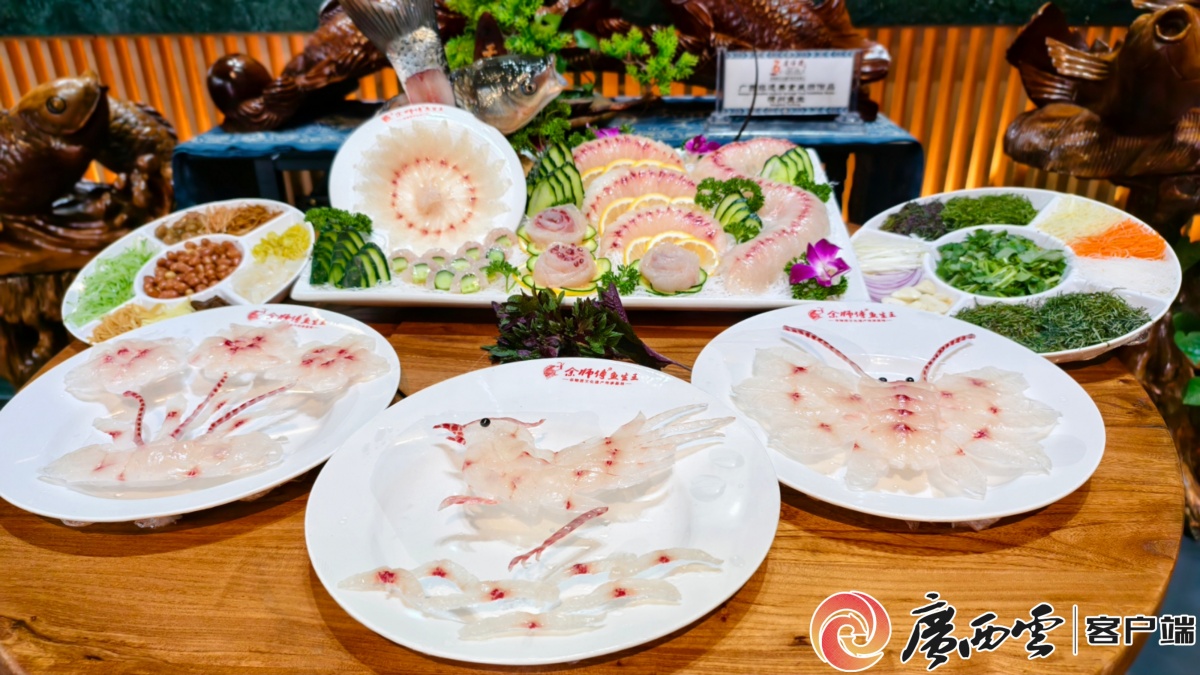 横州鱼生是南宁横州市闻名遐迩的代表性菜肴。鱼生选用无污染的江河流域中的鲜活大鱼(如青竹鱼、草鱼),现杀现切,确保鱼肉晶莹剔透、口感爽脆鲜甜。