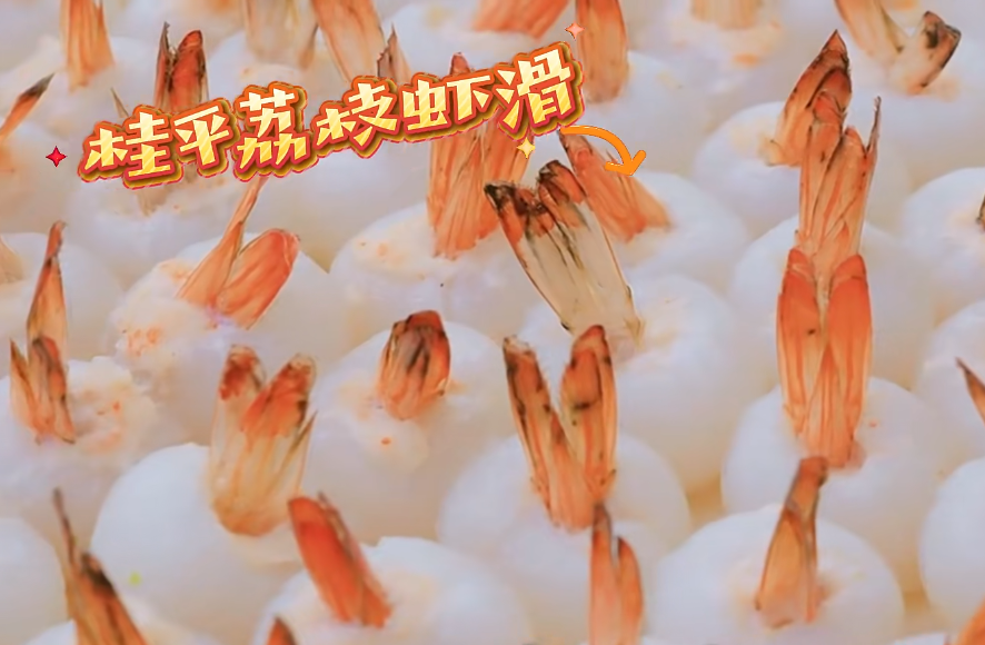 贵港桂平市盛产荔枝,具有“我国荔枝之乡”美誉。当地荔枝不仅是生果,并且加工成罐头、酒、果干、果冻、果醋等产品。而荔枝虾滑是当地一道口味新鲜的构思菜。